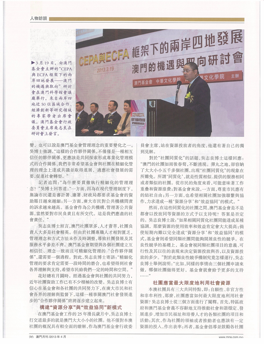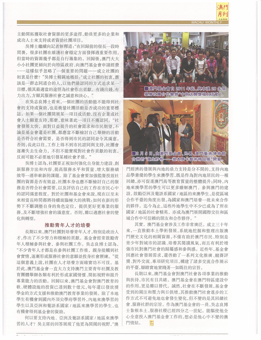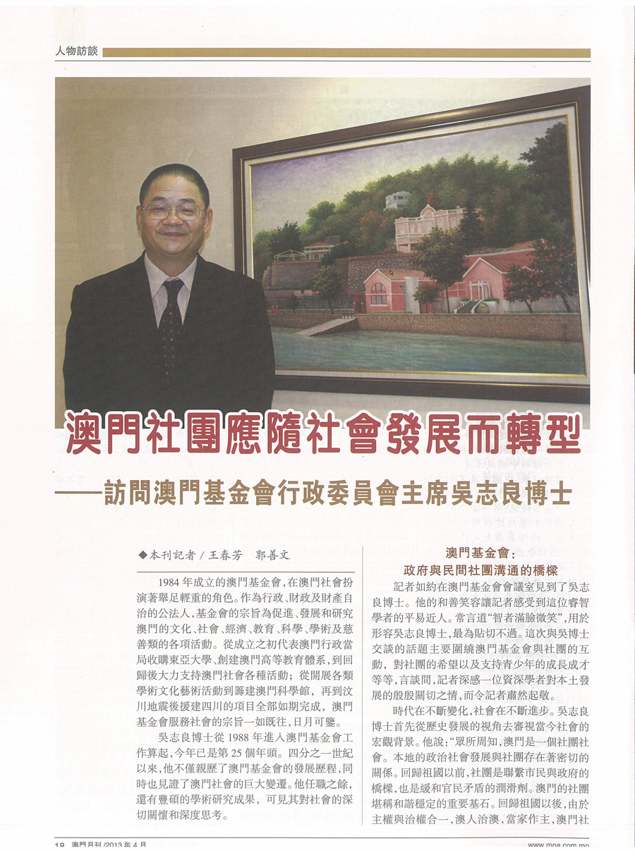 澳門社團應隨社會發展而轉型 ──訪問澳門基金會行政委員會主席吳志良博士