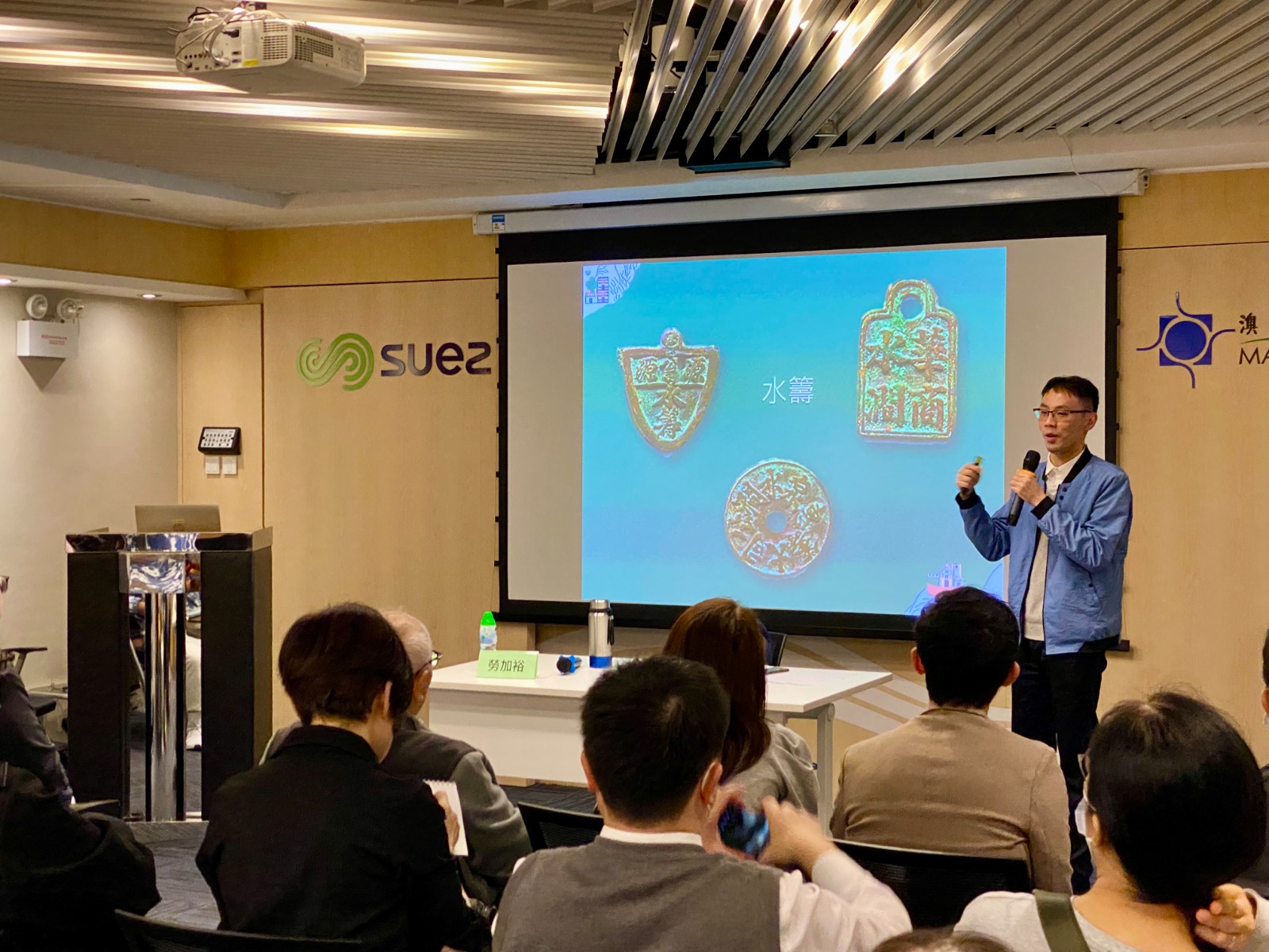 首場講座由遺產學會副會長勞加裕主講“從井泉到西江水——澳門百年供水歷程”,從澳門的水井、山泉和銀坑水說起,講者分享了早期澳門尚未有自來水時,澳門人的用水習慣和由“水”引伸的獨特行業和企業,如送水業、泡水館,後來由於人口、疫症以至社會經濟的發展,供水成為了公共的議題,而隨著自來水的出現,帶來了新的供水系統,但也經歷了“自來水”與“天然水源”拉鋸的特別時期。隨後因應水荒的頻繁發生,澳門開拓了新的供水源頭──內地供澳原水,而透過水庫、跨海水管、水廠等的建設和優化,成就了今天相對完善的供水系統。