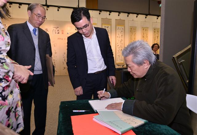 A cerimónia de inauguração teve lugar na Sala de Exposição do Centro UNESCO, com a presença de Liu Xiaohang, Chefe do Departamento da Cultura e Educação do Gabinete de Ligação do Governo Popular Central na RAEM, Huang Hangqian, Chefe do Gabinete do Comissariado do Ministério dos Negócios Estrangeiros da República Popular da China na RAEM, Wu Zhiliang, Presidente do Conselho de Administração da Fundação Macau, Ung Vai Meng, Presidente do Instituto Cultural de Macau, Ma Kam Keong, Membro do Conselho de Administração do Instituto para os Assuntos Cívicos e Municipais, Lai Seng Pui, Sub-director Permanente da Edição do Jornal Ou Mun, e Lai Ieng, Presidente da Associação dos Artistas de Belas-Artes de Macau, Lao Fu Ip, Presidente da Associação de Caligrafia de Deleite (Macau), Kuan Kun Cheong, Presidente da Associação de Arte e Cultura Wa Ha Macau, Si Hou, Secretário-Geral da Fundação Henry Fok. Todos os ilustres convidados presenciaram a cerimónia de corte da fita, juntamente com o calígrafo Ho Loi Seng. A Cerimónia decorreu num ambiente muito animado e muitos amigos vieram para congratular o Artista.