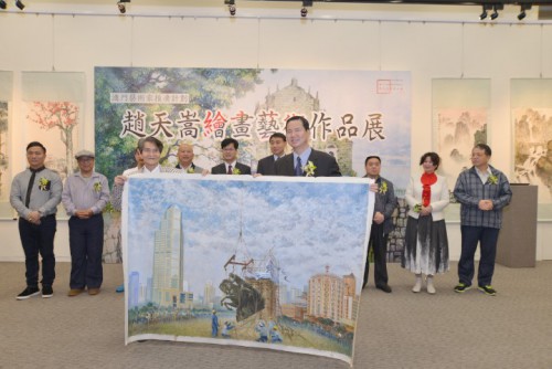 As obras expostas abrangem pinturas chinesas e pinturas a óleo representativas da arte da China e do Ocidente, sendo as obras uma expressão artística de manifestação do patriotismo, nomeadamente, através dos grandes acontecimentos históricos, do património cultural de Macau e das paisagens de Zhuhai.