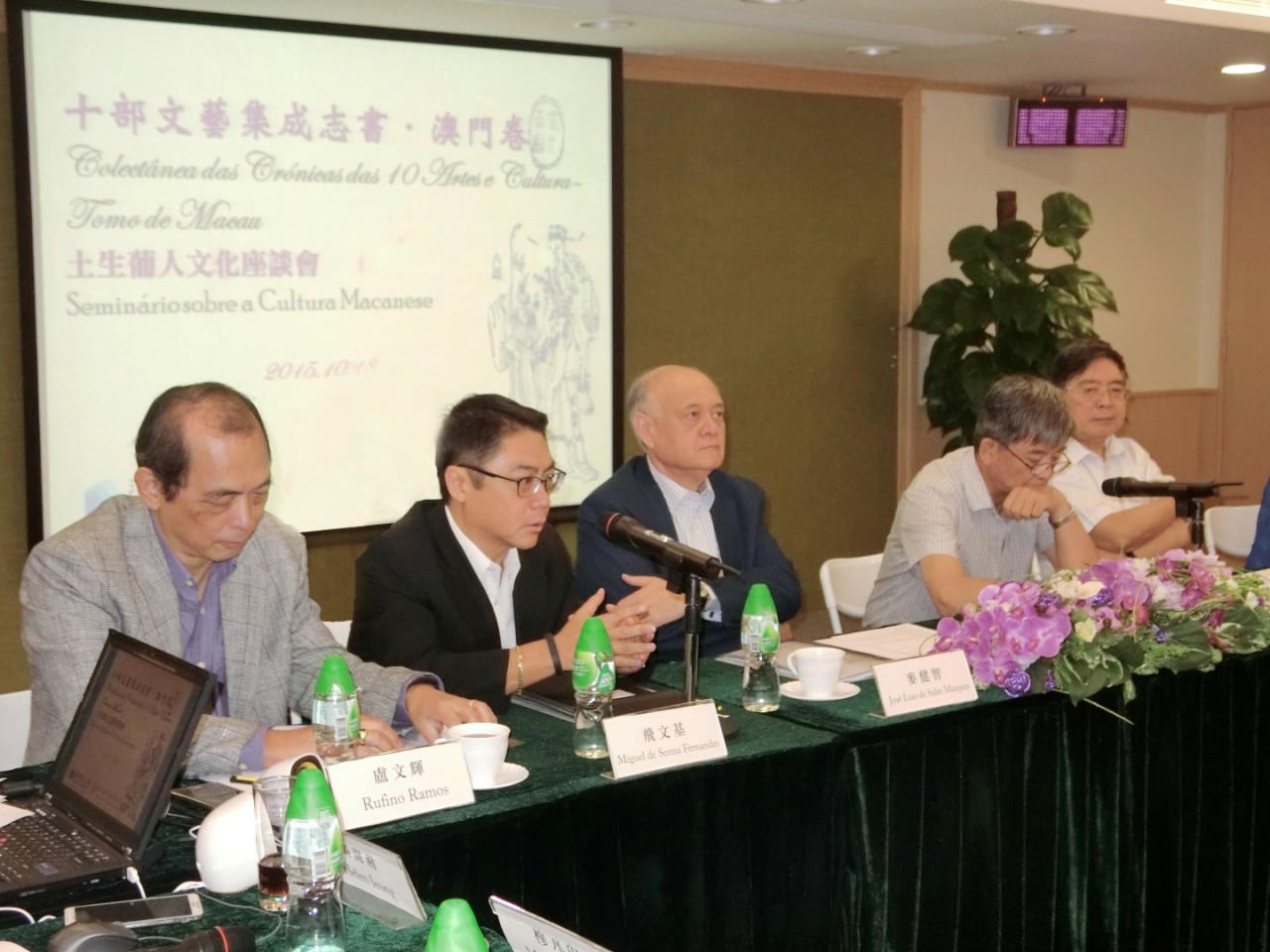 Com o intuito de fazer um levantamento e organizar os recursos populares de Macau, com o objectivo de conservar a cultura tradicional da comunidade macaense de Macau, a Fundação Macau organizou uma reunião alargada sobre o tema “Cultura Macaense” com representantes macaenses ligados a esta área para a edição da publicação “Colectânea das Crónicas das 10 Artes e Cultura– Tomo de Macau”. Foram convidados os representes macaenses, as equipas de compilação da Colectânea de Macau e os especialistas do Ministério Cultural da China, para em conjunto trocarem opiniões relativamente à direcção e trabalhos a desenvolver, em concreto, quanto à recolha de materiais das artes macaenses, nomeadamente, cantigas, danças, provérbios e frases idiomáticas, histórias colectivas, ópera, artes folclóricas, etc., de maneira a que sejam protegidos e transmitidos a futuras gerações.