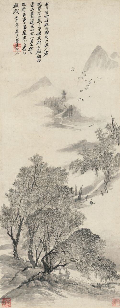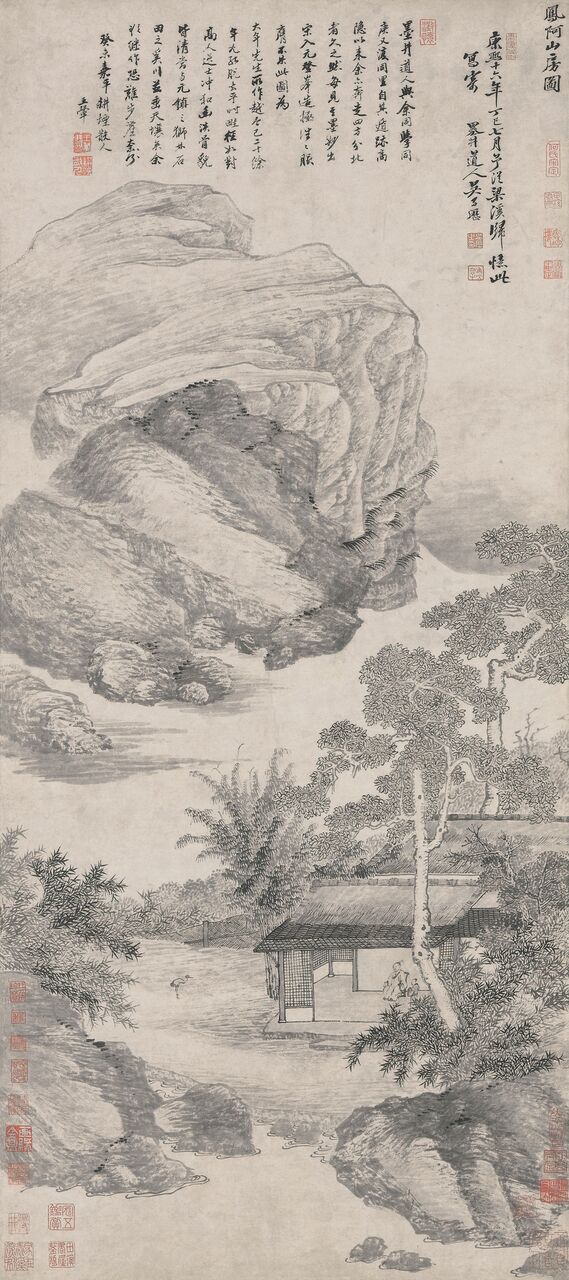 Wu Li (1632-1718), com o nome original de Qi Li e o nome artístico Yu Shan, nasceu em Changshu, na província de Jiangshu. Sendo um renomado pintor do início do período Qing, foi um dos “Seis Mestres de Qing”, juntamente com Wang Shimin, Wang Jian, Wang Yuanqi, Wang Hui e Yun Shouping. Wu Li era exímio em vários campos, particularmente na pintura. Durante gerações a sua família residiu perto da antiga morada do discípulo de Confúcio, Yan Yan (nome de cortesia Ziyou), e porque havia um poço muito profundo (mo jing) na casa de Yan Yan, Wu Li ganhou o epíteto de “Mo Jing Dao Ren” (Taoísta do Poço Profundo) e "Tao Xi Ju Shi" (Budista do Riacho dos Pêssegos). O seu pai faleceu quando ainda era criança e Wu Li foi criado pela mãe. Quando cresceu, dedicou-se à pintura, produzindo emulações meticulosas de originais das dinastias Song e Yuan que vendia para sustentar a mãe. Durante o período Kangxi, Wu Li veio para Macau com Philippus Couplet (1624-1692), um jesuíta flamengo, para receber formação religiosa no Colégio de São Paulo, onde ocasionalmente registava cenas da sua vida em inscrições de pinturas e na sua colectânea de poesia San ba ji. Segundo estes registos, ficamos a saber que o 20º ano do reinado do Imperador Kangxi (1681) foi o ano mais fecundo de Wu Li, pintando o maior número de pinturas e escritos na sua estadia de mais de 3 anos em Macau, o que mostra que os seus estudos de catolicismo não o impediam de escrever. Infelizmente, desconhece-se o paradeiro destas pinturas produzidas em Macau, com excepção da “Pintura do Rio Penjiang”, hoje na colecção do Museu de Xangai. Wu Li retornou mais tarde a Jiangsu para fazer trabalho missionário e foi ordenado padre aos 57 anos de idade (em 1688, no 27º reinado de Kangxi), começando a evangelizar na região de Jiangnan. No 57º ano do reinado do Imperador Kangxi (1718) faleceu em Xangai com a provecta idade de oitenta e sete anos tendo sido enterrado no cemitério católico do lado de fora do Grande Portão do Sul.